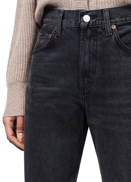 Découvrez le jean Valen d'Agolde avec sa fermeture boutonnée et zippée dissimulée, ses passants de ceinture, et son logo appliqué. Conçu pour un look moderne, ce jean longueur cheville présente des coutures visibles, un style cinq poches et une coupe droite. Profitez de sa taille basse pour un confort élégant.