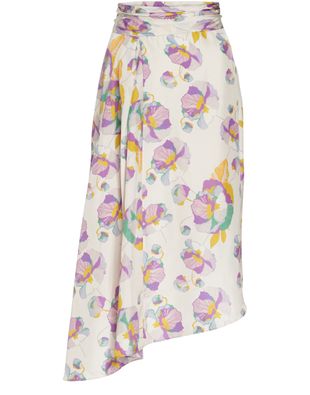 Soulignant la taille d'un effet drapé, la jupe Javenia signée Isabel Marant présente un motif épuré sur une ligne asymétrique. Cette jupe midi en soie accentue une allure féminine.
