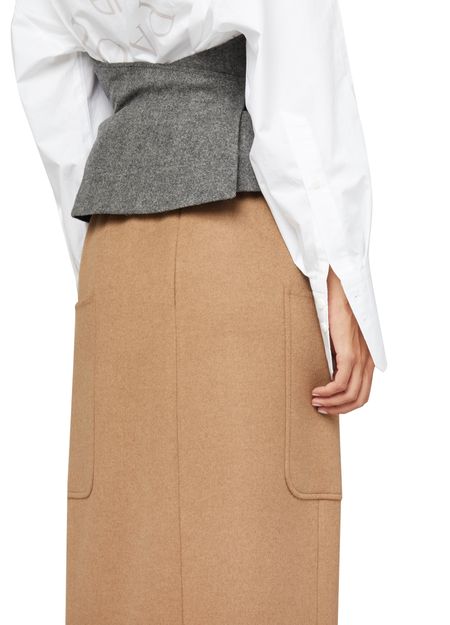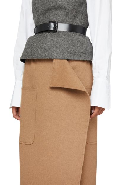 La jupe longue Max Mara Carbone offre un toucher très doux et une coupe droite flatteuse. Sa taille élastique assure un ajustement parfait, tandis que les détails froncés ajoutent une touche d'élégance. Les poches plaquées ajoutent une touche pratique à cette pièce polyvalente et intemporelle.
