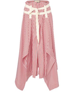 Jouant sur un effet de volume qui lui donne une apparence aérienne, la jupe longue signée Plan C est une pièce citadine au motif à rayures contemporain.
