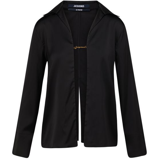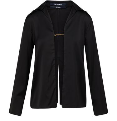 Le Haut Manche Longue Notte de Jacquemus est confectionné dans une matière fluide et présente une forme ample. Il est doté d'un col classique et d'un logo en lettres dorées. Une fente au dos ajoute une touche de sophistication à cette pièce élégante.