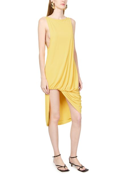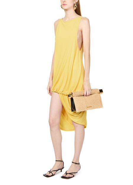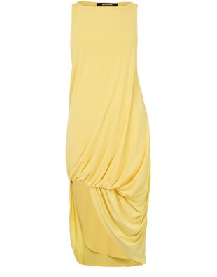 La robe courte Peplo de Jacquemus incarne l'élégance moderne. Sans manches et dotée d'une encolure bateau, elle met en valeur le décolleté. Le détail drapé et la longueur genou en font un choix parfait pour les soirées et cocktails. La surpiqûre visible ajoute une touche de sophistication audacieuse.