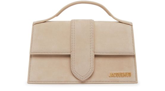 Le grand Bambino de Jacquemus est un sac structuré en nubuck déperlant doté d'une poignée renforcée et des détails surpiqués. Sa fermeture à rabat assure une sécurité optimale, tandis que le logo en lettres dorées apporte une touche d'élégance. La bandoulière réglable amovible permet un porté main, épaule ou croisé.