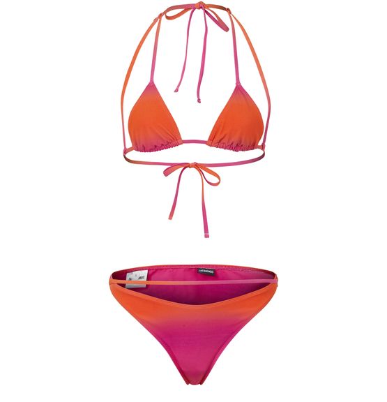 Jacquemus présente le maillot Peirado. Cet ensemble de bikini combine un bas échancré avec un haut de maillot triangle. Celui-ci s'attache grâce à de fines bretelles.