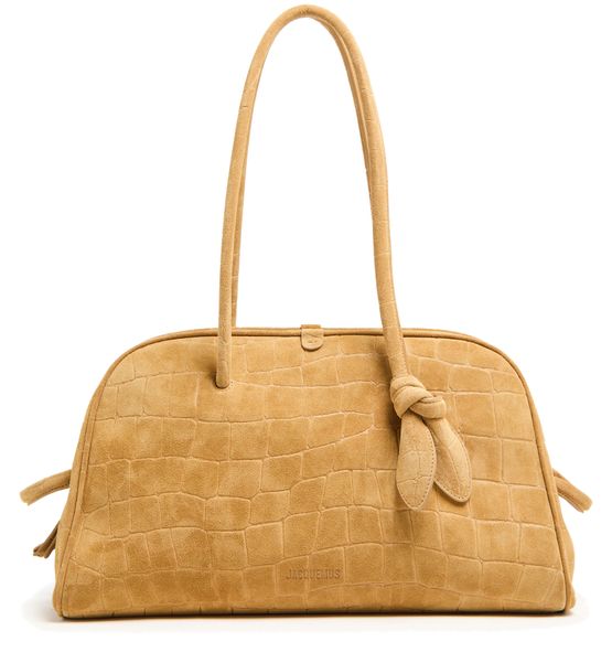 Le sac cabas Jacquemus Le Turismo se distingue par son compartiment unique et sa fermeture à glissière astucieuse. Les surpiqûres apparentes et le logo gravé à l'avant ajoutent du caractère, tandis que les finitions argentées rehaussent son élégance. Porté main ou avec la bandoulière fine, il combine style et praticité.