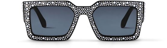 Ces lunettes de soleil LV Clash sont proposées dans une version résolument glamour pour la saison. La monture carrée en acétate noir se pare d'un mélange de cristaux scintillants et de perles lumineuses. Les LV Initiales en métal ornent les branches de cette paire étincelante qui ne passera pas inaperçue.