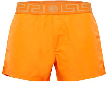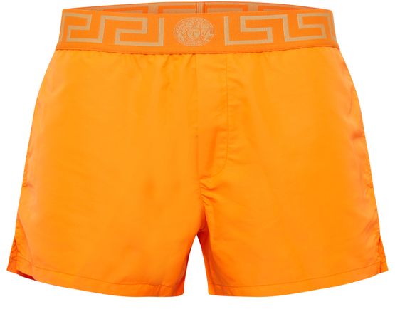 Versace présente ce maillot de bain de type short, une pièce à la coupe ample et courte. La marque italienne signe ce maillot de bain avec ses motifs emblématiques au niveau de l'élastique.