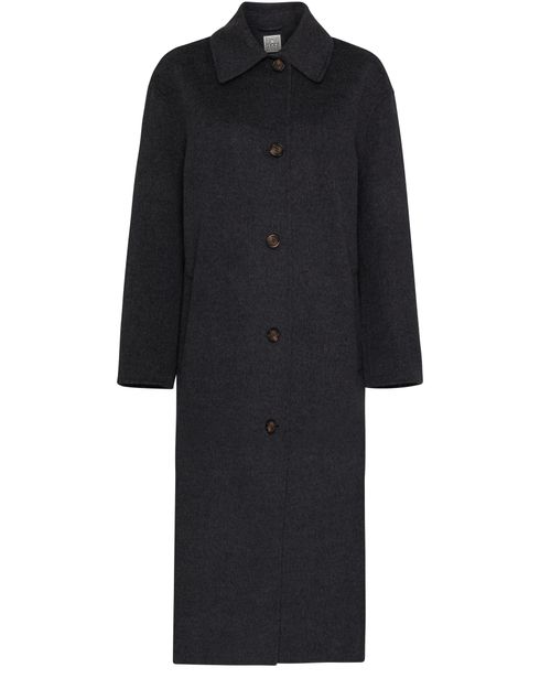 Le manteau Car de Toteme est une pièce longue, dotée d'un col élégant et d'une étiquette avec logo à l'arrière. Avec ses manches longues, sa fermeture à bouton et ses poches latérales, il allie style et praticité. Ses poches à rabat passepoilées ajoutent une touche de sophistication supplémentaire.