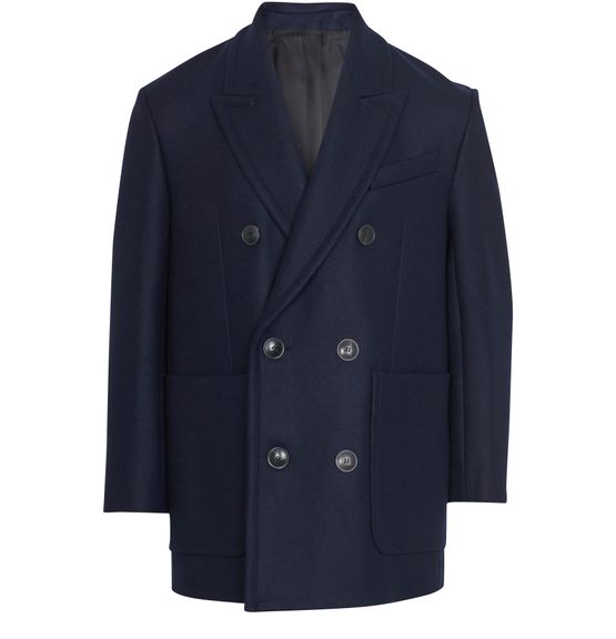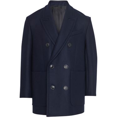 Glissez vos mains dans les deux grandes poches plates du manteau court au large col et fermé par une boutonnière croisée de la marque Ami Paris.