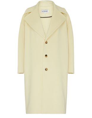 Le manteau en laine Loewe incarne l'élégance intemporelle. Avec son simple boutonnage à trois boutons et son col cranté, il souligne la silhouette. La longueur genou et les manches longues en font un pardessus classique. Le logo appliqué ajoute une touche de luxe, idéal pour les journées raffinées.