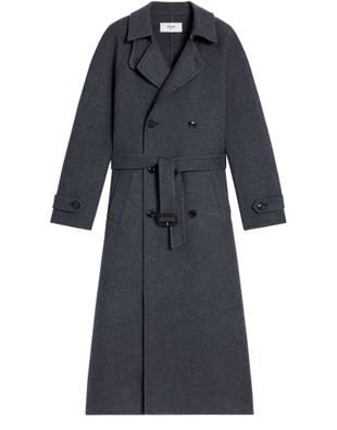 Description : porté loose, col droit, manches raglan, 2 poches passepoilées diagonales, 2 pattes de serrage aux poignets, mentolière, fente milieu dos, 7 boutons corne gravés Celine paris, boutons corne gravés Celine paris sur patte de serrage et mentoli, crochet au col.
