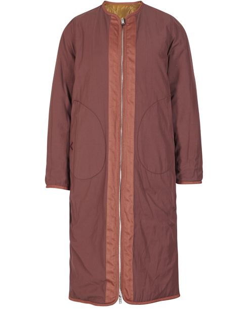 Ce manteau réversible est signé Kenzo. La maison française présente ici une pièce zippée au design contemporain mêlant un col ras avec un effet matelassé.