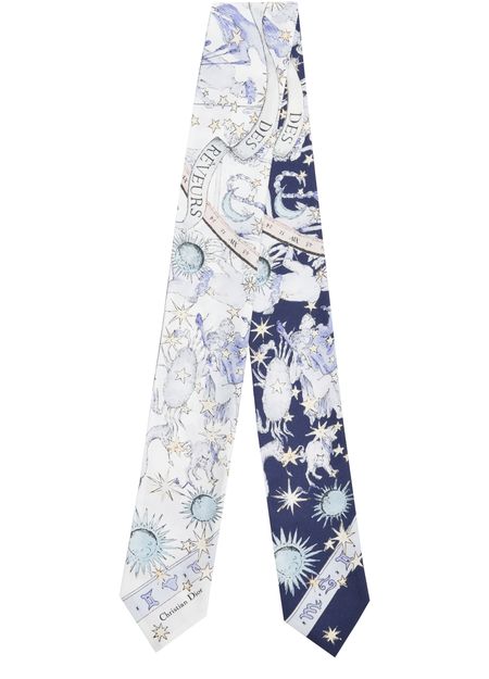 • Description : Double face imprimé Dior Night of Dreams blanc et bleu marine, signature Christian Dior, finitions en pointe.