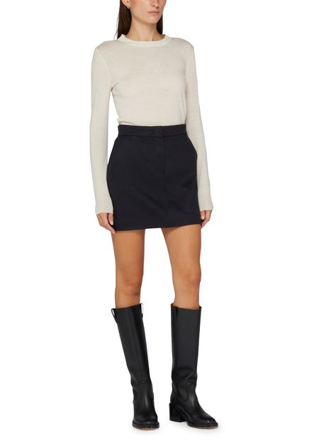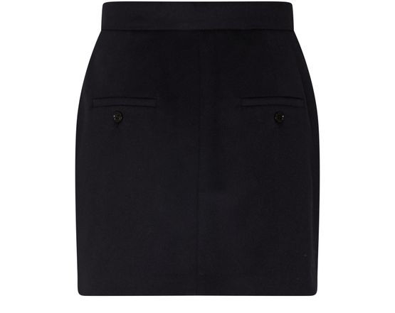 • Description : fermeture crochet et à glissière dissimulée, logo appliqué, logo à l'arrière, surpiqûre visible, courtes, poches à rabat passepoilées, poche arrière, jupe droite.