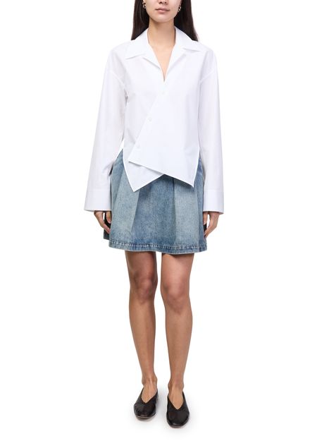 Découvrez la mini jupe en denim de Loewe, confectionnée en denim de qualité avec des détails plissés sur le devant et une surpiqûre visible. Sa longueur mini et sa coupe structurée offrent une allure contemporaine, idéale pour passer sans effort d’un style décontracté à une tenue plus sophistiquée.