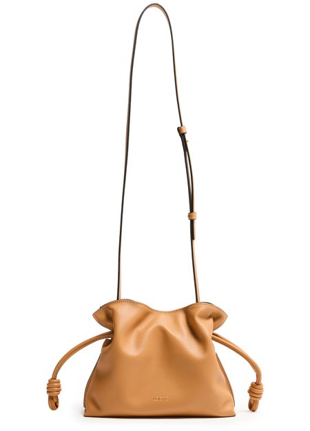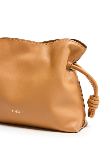Le mini clutch Flamenco de Loewe présente le logo en lettres argentées à l'avant. Elle se ferme par un cordon coulissant et possède une bandoulière fine et une poignée unique pour un porté main, épaule ou croisé. La bandoulière est amovible pour une polyvalence maximale.