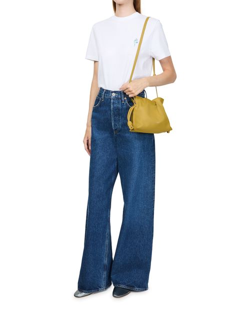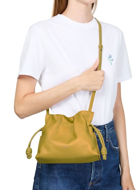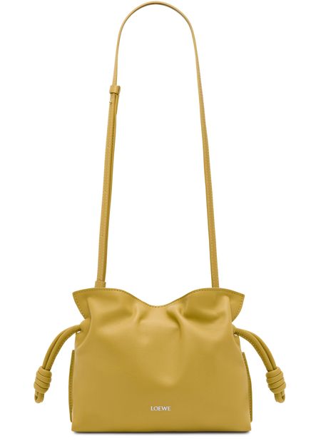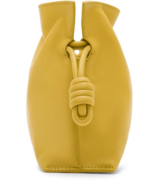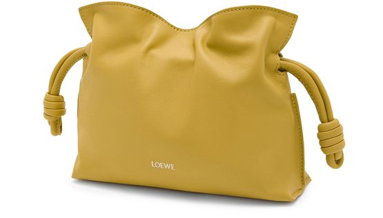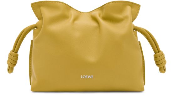 Découvrez la mini Flamenco clutch de Loewe, confectionnée en cuir de veau nappa avec une bandoulière fine amovible. Les coutures apparentes et le logo à l'avant soulignent l'élégance, tandis que la fermeture par cordon coulissant protège vos essentiels dans un compartiment unique.