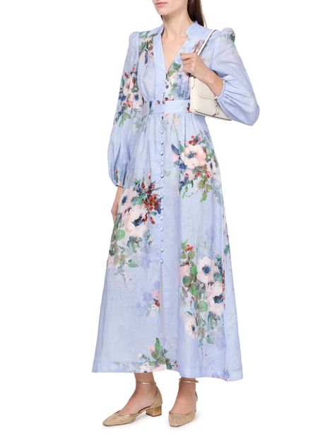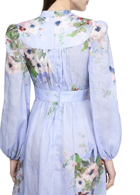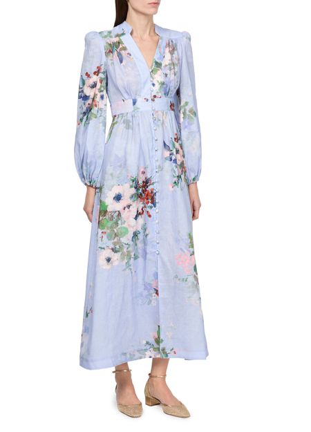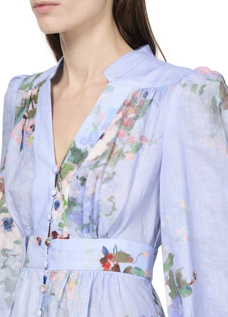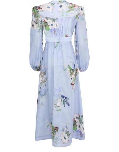 La robe midi décolletée Everley de Zimmermann allie élégance et modernité. Son imprimé floral enchante, tandis que le col fendu et les manches longues subliment la silhouette. La coupe trapèze flatte, et la fermeture à glissière dissimulée au dos, ainsi que la surpiqûre visible, ajoutent une touche raffinée à cette pièce unique.
