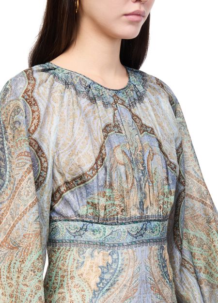 Découvrez la mini robe Wanderlust Zimmermann, ornée d’un motif cachemire et d’un col rond élégant. Les manches longues, les détails brodés et les volants raffinés subliment la silhouette. Sa fermeture zippée au dos assure une allure moderne, idéale pour toutes vos occasions sophistiquées.