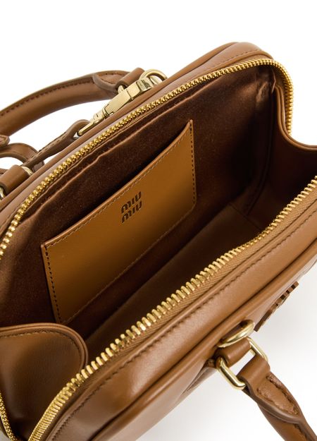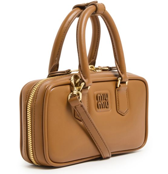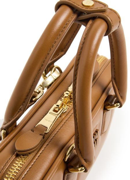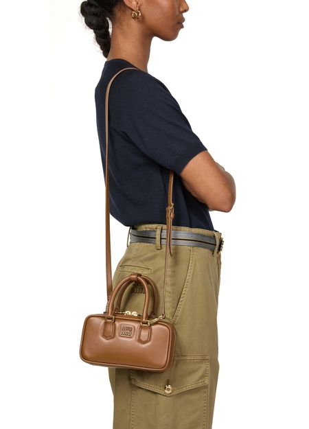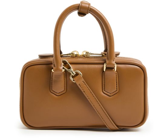 Le mini sac en cuir Arcadie allie élégance et praticité. Sa fermeture à glissière sécurise un compartiment unique, tandis que les finitions dorées rehaussent son charme. Avec sa poignée double et sa bandoulière fine, il se porte à la main ou en bandoulière. Le logo embossé et les surpiqûres apparentes ajoutent une touche raffinée.