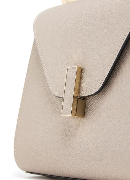 Découvrez le mini sac Iside Valextra, confectionné en cuir grainé avec une finition dorée et des coutures apparentes. Sa poignée unique et sa bandoulière fine ajustable offrent une allure sophistiquée, tandis que la poche intérieure optimise l’organisation au quotidien.