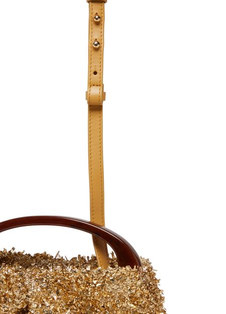 Le mini sac porté croisé de Dries Van Noten allie élégance et praticité. Avec son compartiment unique et ses finitions dorées, il se distingue par sa poignée double et ses poches intérieures plaquées. Les surpiqûres apparentes ajoutent du caractère, tandis que la bandoulière ajustable et amovible permet un porté main ou épaule.