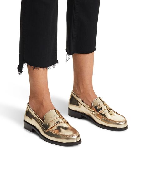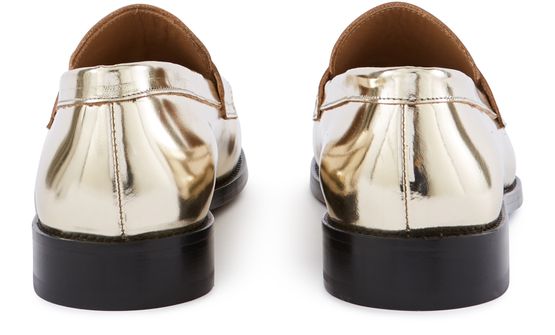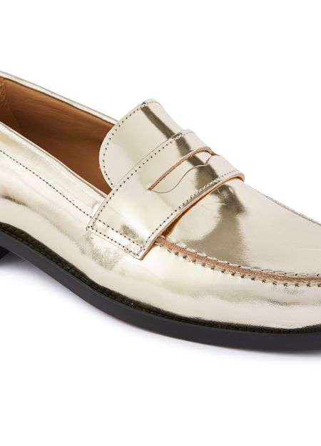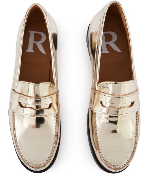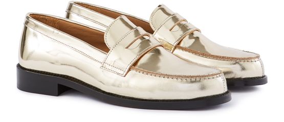 Les mocassins en cuir de la maison Roseanna prennent une teinte métallisée et un effet miroir, pour apporter une touche de luminosité dans un style vestimentaire plus discret.
