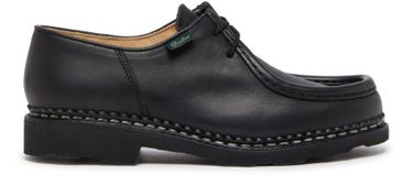 Découvrez les derbies Michael de Paraboot avec logo sur le côté, surpiqûres visibles et talon bas. La semelle contrastante et le design à bout rond apportent une touche unique et moderne.