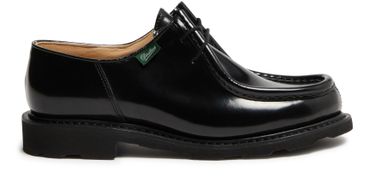 Découvrez les derbies Michael de Paraboot, alliant style moderne et artisanat classique. Ces chaussures présentent un talon bas, un logo embossé et une semelle contrastante avec des coutures visibles. Le bout rond et la fermeture à lacets garantissent un ajustement raffiné et confortable.
