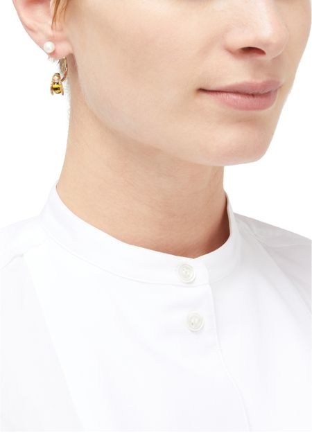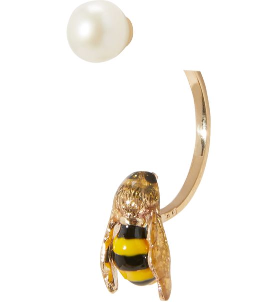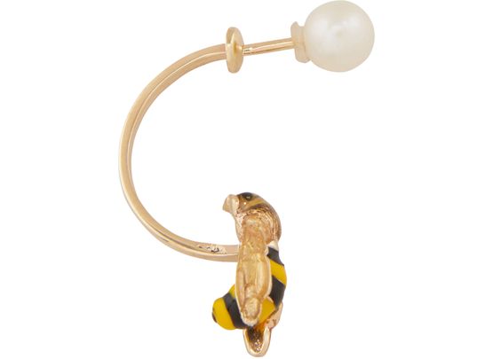 Succombez à la fantaisie contemporaine de cette mono boucle d’oreille To Bee Or Not To Be Piercing signée Delfina Delettrez. L’univers de la designer italienne est ponctué sa fascination pour le monde des insectes. L’abeille, mise en scène avec minutie, se veut ici la représentante stylisée de son élan créatif et de son précieux savoir-faire italien.