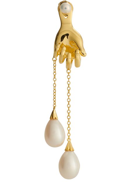 Cette mono boucle d'oreille Grab Them by the Balls est une création délicate de la créatrice Anissa Kermiche. Un modèle avec des perles en suspension très raffinées.