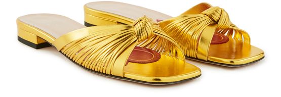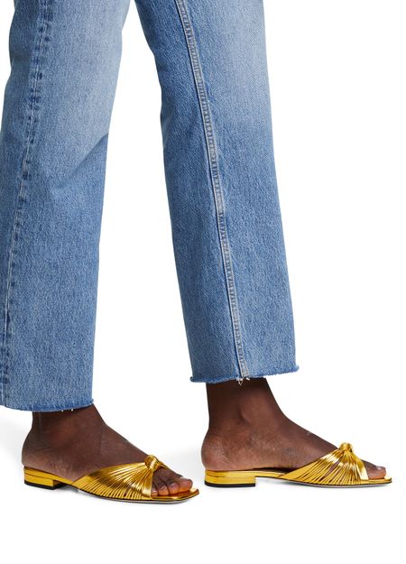Aussi brillantes qu'un bijou, ces mules à noeud signées Gucci complètent à la perfection une tenue de soirée. A porter avec un pantalon fluide ou une combinaison.