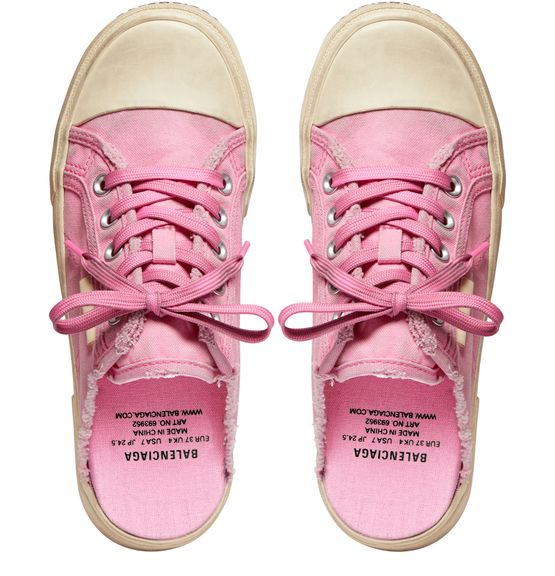 • Description : Ouvert à l'arrière, effet délavé, logo Balenciaga imprimé sur le bord de l'orteil, taille embossée à l'arrière, empeigne à lacets avec 5 oeillets.