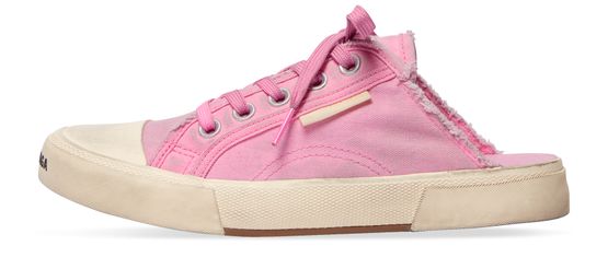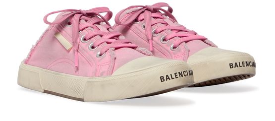 Mules Paris de Balenciaga, ouvert à l'arrière avec un effet délavé. Logo Balenciaga imprimé sur le bord de l'orteil, taille embossée à l'arrière. Empeigne à lacets avec 5 oeillets.