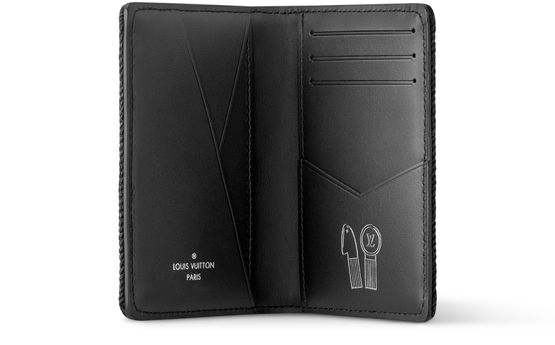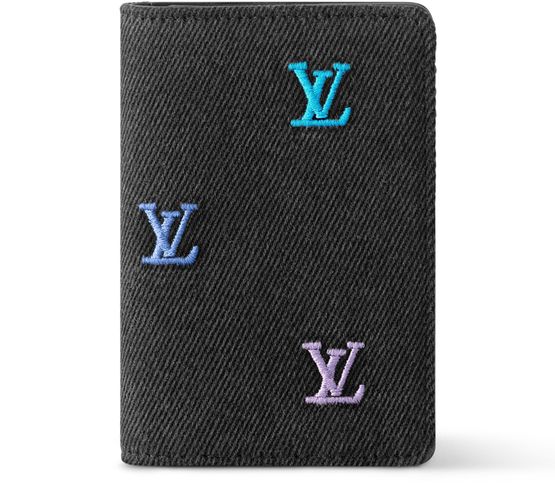 Réalisé en tissu LV Blason Denim, cet organizer de poche est un portefeuille à la fois compact et fonctionnel. Brodées sur le denim noir, les LV Initiales colorées évoquent des notes de musique sur une partition. Doté d'une doublure en cuir de veau souple, l'intérieur révèle un motif écouteurs embossé symbolisant la synesthésie de Pharrell Williams, un phénomène neurologique qui traduit les sons en couleurs.