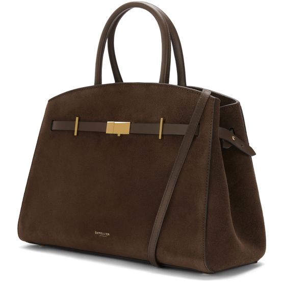 Découvrez le sac à main The Midi Husdon de Demellier, un tote élégant doté d’une poignée double et d’une bandoulière fine. Le logo à l’avant et les finitions dorées subliment ce modèle, parfait pour celles qui recherchent sophistication et praticité au quotidien.