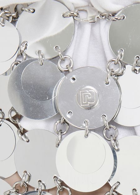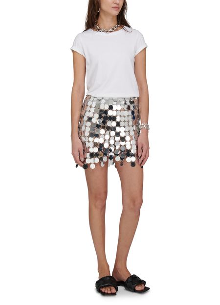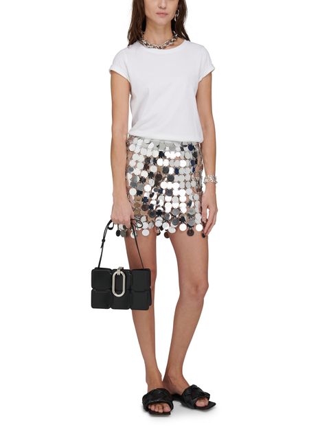 La jupe mini Paco Rabanne se distingue par sa coupe asymétrique audacieuse et ses détails géométriques captivants. Son motif emblématique de la marque évoque un esprit avant-gardiste, tandis que les finitions métalliques apportent une touche de brillance. Cette pièce incarne l'élégance moderne et le style audacieux de la créatrice.