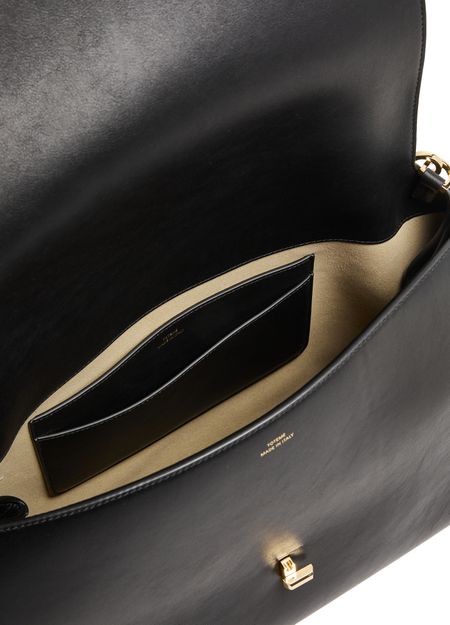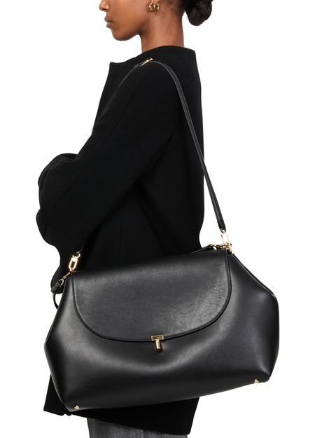 Découvrez le sacoche en cuir T-Lock de Toteme, une œuvre d'art en cuir lisse. Ce sac porté épaule présente une fermeture pivotante et une poignée unique, accompagnée d'une bandoulière ajustable et amovible pour un port polyvalent. Le grand compartiment intérieur et les surpiqûres apparentes accentuent son élégance fonctionnelle, tandis que le logo métallique à l'avant ajoute une touche signature.