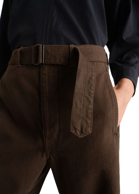 Découvrez le pantalon casual à taille ceinturée de Lemaire, doté d'une longueur cheville et d'une fermeture à glissière avec bouton. Les poches latérales, la surpiqûre visible et la ceinture amovible offrent une allure contemporaine, idéale pour un style polyvalent et raffiné au quotidien.