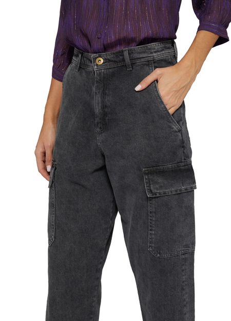 Le jean cargo Sessùn, avec sa longueur cheville, incarne le chic décontracté. Ses poches latérales pratiques et sa poche plaquée à l'arrière révèlent une fonctionnalité raffinée. La fermeture bouton et à glissière dissimulée assure un ajustement parfait, tandis que le logo appliqué et le détail patch ajoutent une touche distinctive.