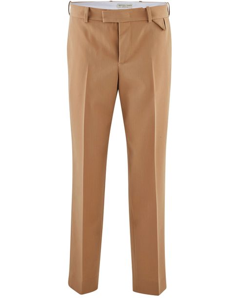 Sobre et élégant, ce pantalon droit à pinces incarne par sa sophistication délicate la philosophie épurée et monochrome qui a rendu célèbre la maison Bottega Veneta.