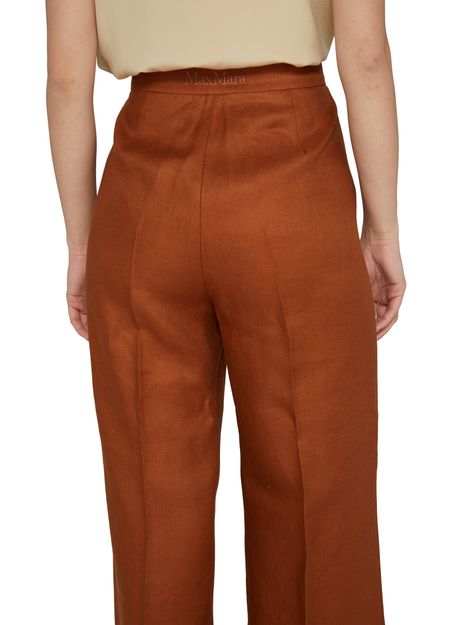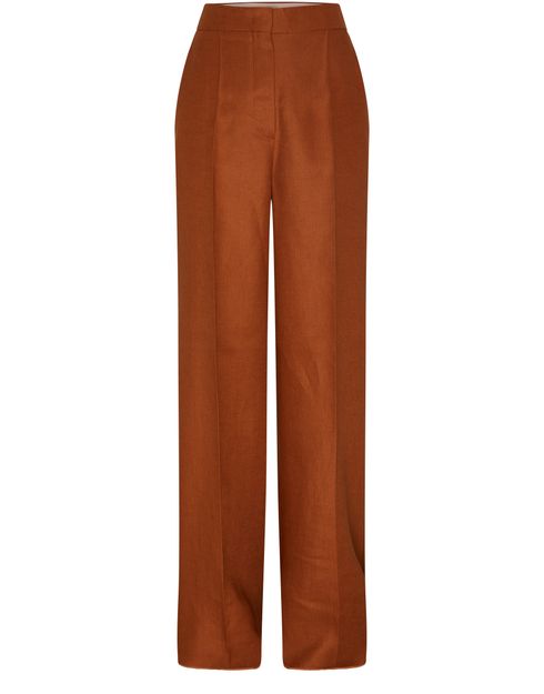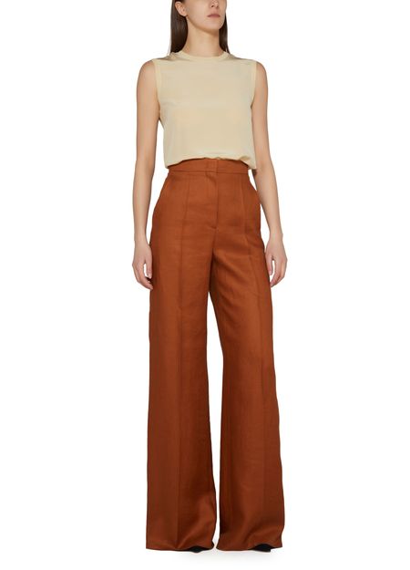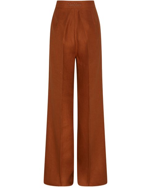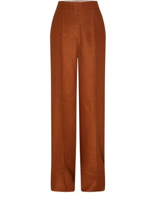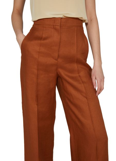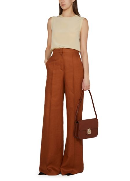 Le pantalon jambes larges Hangar de Max Mara est un pantalon casual à la longueur cheville. Il présente des pinces au dos, des poches latérales, une fermeture à glissière dissimulée et une étiquette avec logo à l’arrière. Porté taille haute, il offre une coupe droite élégante et intemporelle.
