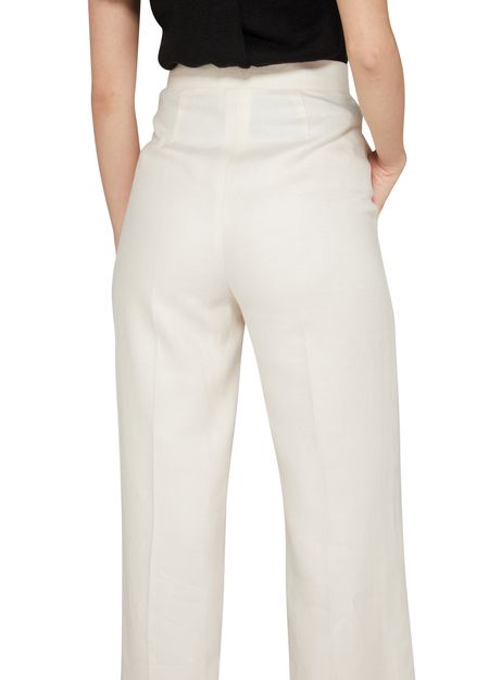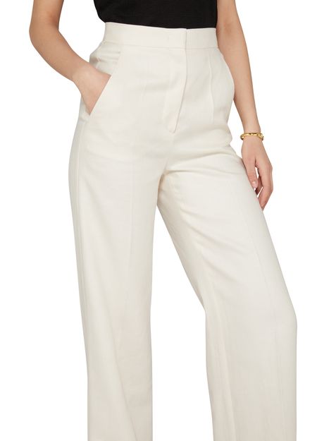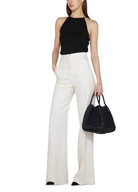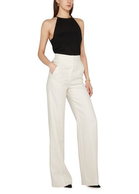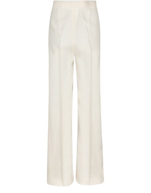 Le pantalon jambes larges Hangar de Max Mara est un pantalon casual à la longueur cheville. Il présente des pinces au dos, des poches latérales, une fermeture à glissière dissimulée et une étiquette avec logo à l’arrière. Porté taille haute, il offre une coupe droite élégante et intemporelle.
