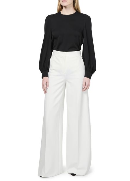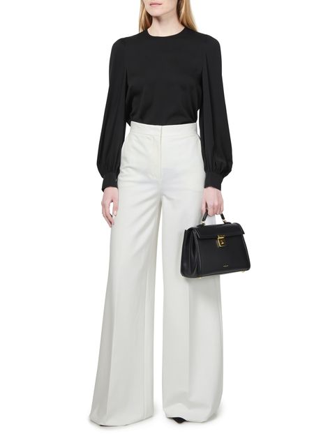 Le pantalon large Circolo de Max Mara incarne l'élégance intemporelle. Sa fermeture dissimulée et ses pinces au dos soulignent la silhouette, tandis que la surpiqûre visible ajoute une touche de caractère. Avec sa longueur cheville et sa coupe large, ce modèle habillé se porte à la taille haute, offrant un style raffiné.
