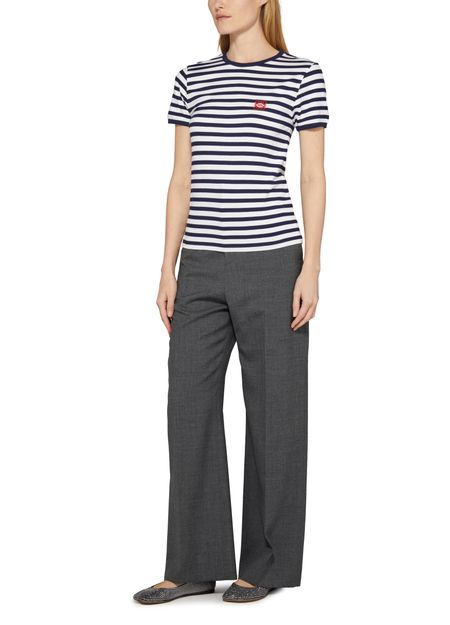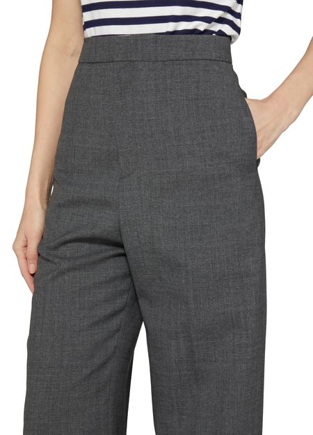 Le pantalon taille haute Loewe présente une longueur cheville et une étiquette avec logo à l’arrière. Avec une fermeture bouton et à glissière dissimulée, des poches latérales, une poche arrière, et des poches à rabat passepoilées, ce pantalon offre à la fois style et fonctionnalité pour une tenue élégante et moderne.