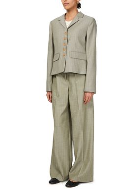 Découvrez pour le pantalon Thom de Skall Studio, avec sa coupe large pour un confort stylé. Porté taille haute, ce pantalon habillé présente un motif à carreaux sophistiqué, des pinces à l'avant et une longueur cheville élégante. La fermeture à glissière avec bouton et les deux poches avant ajoutent à sa fonctionnalité, améliorant votre garde-robe formelle.