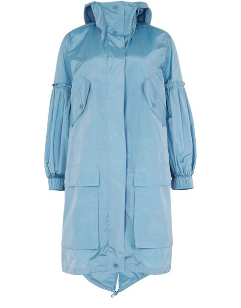 Description : Détails sur les manches, deux grandes poches avant à rabat, manches longues bouffantes, poche latérale à rabat boutonné, forme ample, taille élastique avec cordon coulissant.