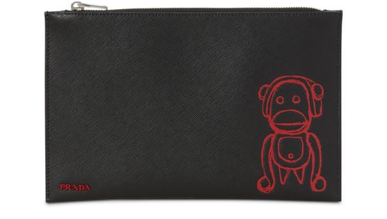 Cette pochette continentale enrichie de détails techno-psychés confirme l’incroyable capacité de Miuccia Prada à explorer des territoires inconnus et à mêler entre eux des univers antinomiques. L’un des personnages colorés issu de la collection Pradamalia pimente ce modèle aux lignes épurées d’une note avant-gardiste. La maison italienne se plaît ainsi à brouiller les pistes entre haute couture et haute technologie pour un résultat ultra-désirable teinté...