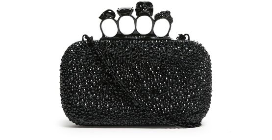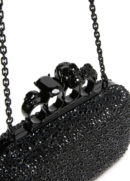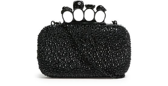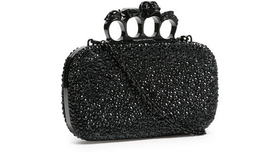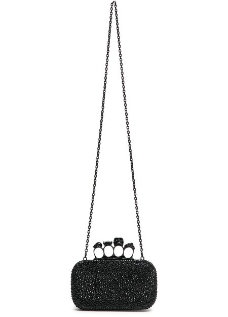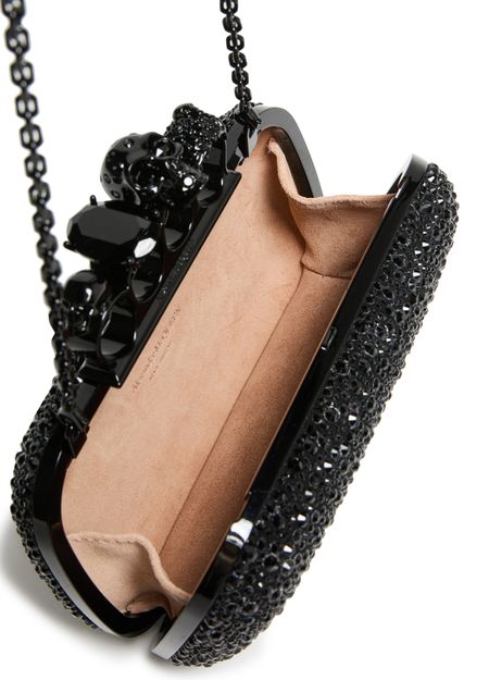 Découvrez la pochette skull de Alexander McQueen, entièrement brodée de sequins et dotée d'une bandoulière chaîne amovible. Les détails de perles et le logo à l'avant subliment ce modèle, tandis que les finitions métalliques et l'intérieur en tissu offrent une allure contemporaine irrésistible.