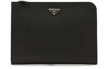 Le porte-document en cuir Saffiano de Prada est un accessoire ultra élégant. Plus besoin de vous baladez avec carnets et stylos sous le bras ni d'emportez votre sac partout : cette pièce de maroquinerie contient tout ce qu'il vous faut. Son design sobre est marqué par la forme anguleuse contrastée avec un angle arrondi suivant la fermeture zip pour vous permettre de retrouver facilement le...